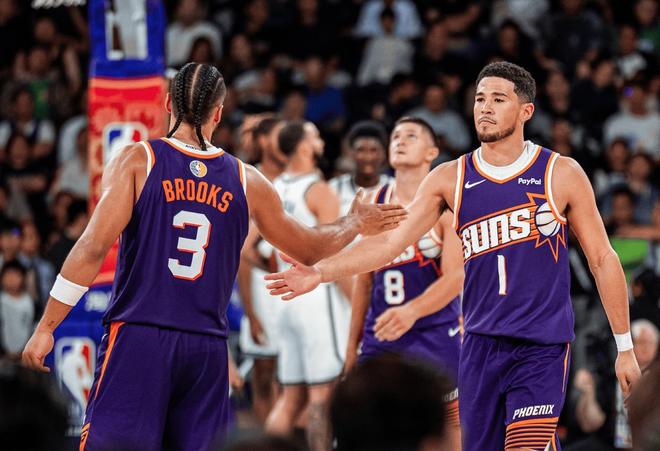 NBA季前賽中國(guó)站,菲尼克斯太陽和布魯克林籃網(wǎng)一觸即發(fā)!太陽這個(gè)休賽期成為笑柄之一,五馬換六羊越換越不強(qiáng)。曾經(jīng)這支太陽隊(duì)還是總決賽隊(duì)伍,卻被管理層給玩脫了,交易走布里奇斯,艾頓和保羅,換來兩個(gè)偽核心,今夏無奈拋棄了比爾,還交易了最穩(wěn)定的進(jìn)攻得分點(diǎn)杜蘭特,關(guān)鍵是在杜蘭特這筆操作中,太陽居然一無所獲,就換來一個(gè)杰倫格林。而且,太陽對(duì)于格林的前景,還很有信心,從數(shù)據(jù)上看,杰倫格林確實(shí)有一定天賦,上賽季場(chǎng)均能拿21分,作為火箭隊(duì)的頭號(hào)得分手之一,不過格林打法低效,無法勝任老大職責(zé),和正兒八經(jīng)的全明星級(jí)別球員,還有很大差距。